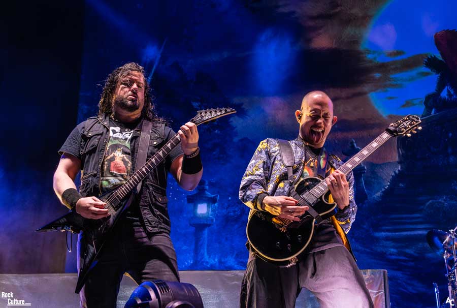 La noche empezó puntual con la actuación de los suecos Orbit Culture. Breve, pero intensa. Guturales de lo más profundo de las entrañas de Niklas Karlsson se combinaban con sus cantos limpios (de un ligero aire a James Hetfield), ambos parte de perfectas combinaciones de prodigio, velocidad y riffs agridulces.