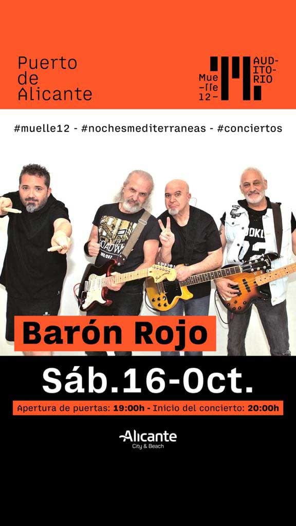 El ciclo de conciertos de Muelle 12 Alicante, sigue sumando nombres a su cartel. Tras contar con grupos de la talla de El Drogas, Saurom, Loquillo o Biznaga, ahora confirman la actuación de los míticos Barón Rojo.