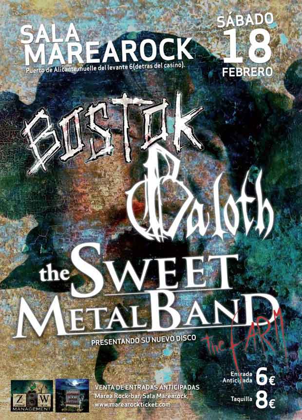 El próximo sábado 18 de febrero tenemos una cita ineludible en la sala Marearock de Alicante. Bostok, Baloth y The Sweet Metal Band se presentan en directo para ofrecernos una noche de metal de calidad.