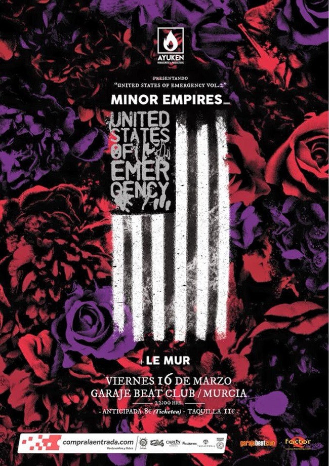 Minor Empires, el grupo madrileño formado por miembros de Nothink, Toundra, The Bing Bench y Moonich estarán en Murcia presentando su tercer LP United States of Emergency Vol. 2. Junto a ellos estarán los murcianos Le Mur presentando los temas de El Brote, su primer larga duración.