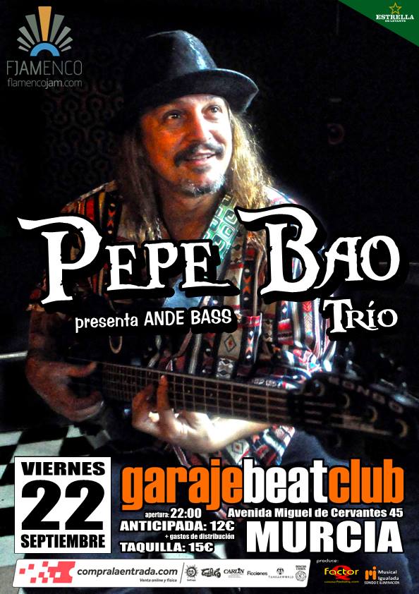 El próximo viernes 22 de septiembre tendremos en Murcia a uno de los mejores bajistas del país Pepe Bao. Un músico con una extensa carrera en la que ha colaborado con grupos de la talla de O’Funkillo, Obús, Medina Azahara o Kiko Veneno entre muchos otros.