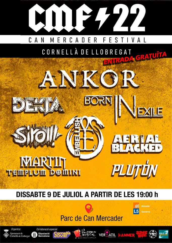 Ankor, Dekta, Born in Exile, Siro!!, Embellish, Aerial Blacked, Martin Templum Domini y Plutón estarán en el festival a partir de las 19:00.