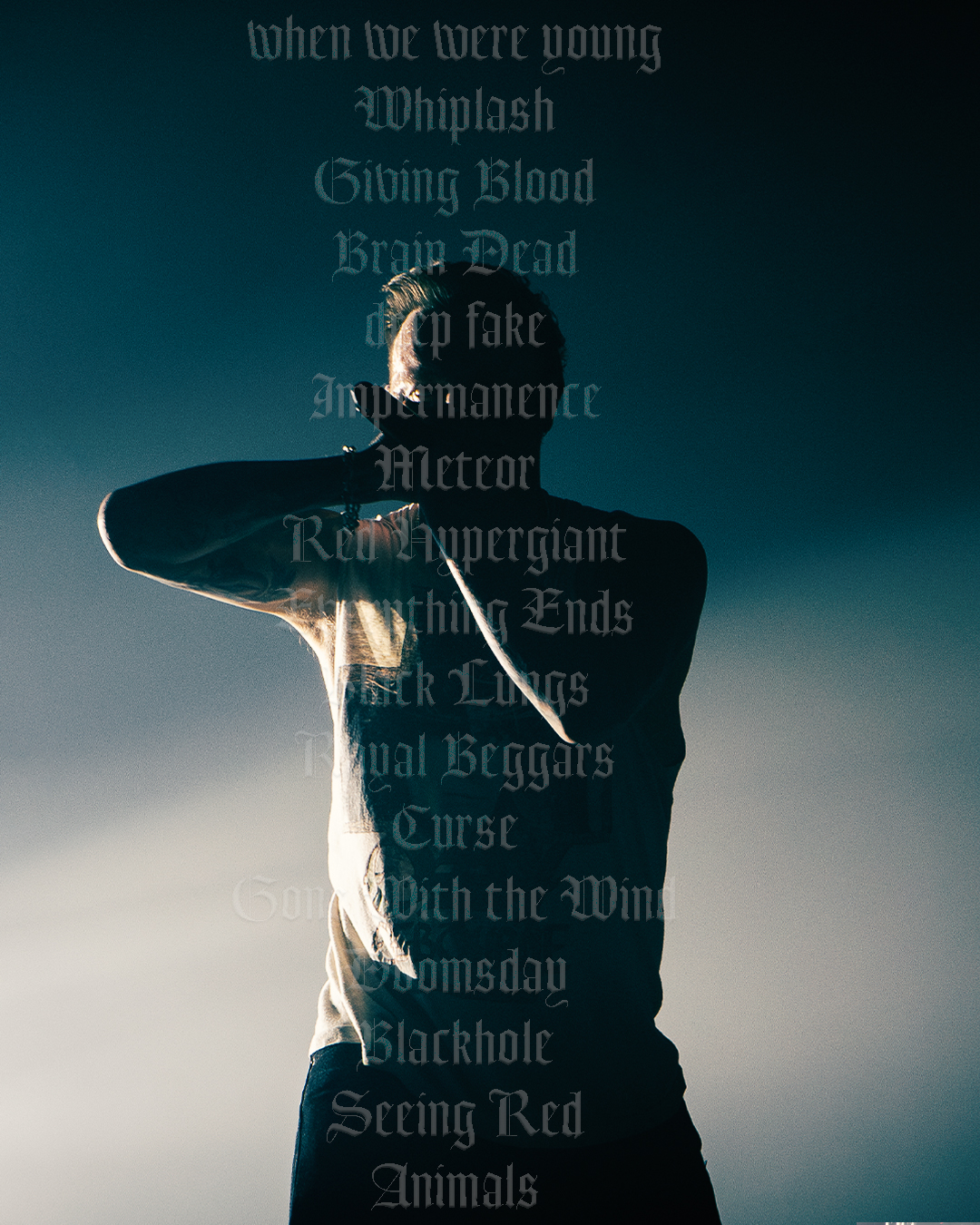 La banda no dejó de lado los clásicos, y pudimos disfrutar de temazos como Doomsday o Royal Beggars, pero también Whiplash, Brain Dead, Blackhole, Curse y Seeing Red, todos del reciente The Sky, The Earth & All Between. No podían faltar los himnos del Architects actual, como when we were Young y Animals