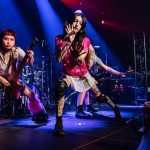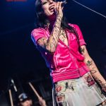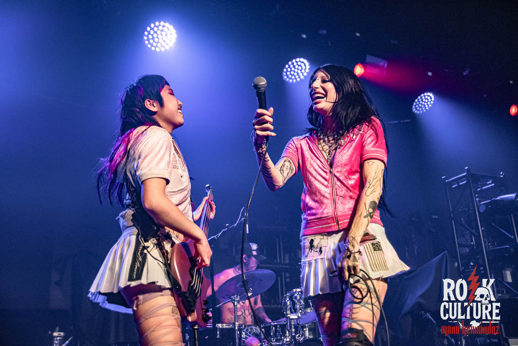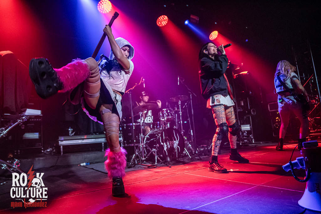 Decir que vocalmente Romy Flores es bastante versátil, pues detrás de esta joven artista, poco conocida por estos lares, se esconden varios registros, desde un tono bajo que encaja perfectamente con efectos vocales industriales, hasta partes melódicas o guturales agresivos, pasando por momentos de lírica en clave de Trap. Definitivamente, tras esa imagen de diva millennial Emo/Gótica se esconde una gran vocalista que encaja a la perfección con varios estilos actuales, como así lo ha demostrado en temas colaborando con otros artistas y de lo que hizo gala en toda la noche, al margen de algunas pistas vocales pregrabadas que no sirven más que para que la banda suene lo más parecida al disco. Un elemento que no sólo se vio y repitió en la parte vocal sino también en la instrumental, dejando a veces cierta sensación de playback que no deslució para nada el espectáculo. Y es que no estábamos precisamente en un concierto hecho por y para puretas.