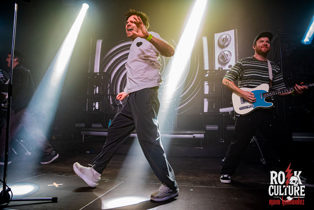 Arrancaron con Bloodshot y Rou marcándose los primeros pasos de baile como el buen raver que lleva dentro. Desde el primer momento había caras de éxtasis y alegría entre el público y no tardaron en haber algunos crowd-surfers. En el escenario Rou al micro con la energía a tope, gesticulando invitando al público a seguirle. Chris Batten en el bajo se ocupaba también de las percusiones que la banda lleva atrás para dar más energía a los precisos golpes de Rob Rolfe en la batería. Como siempre a su aire, un risueño Rory Clewlow se mantenía en su sitio haciendo que su guitarra, siempre sutil en el sonido de la banda, transmitiese ese punto justo (y tan necesario) de Rock y Core que les caracteriza.
