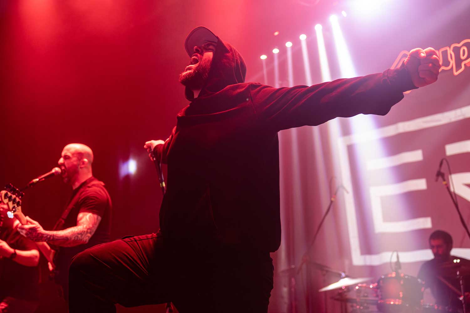 De esta banda destaca muchísimo la entrega en el escenario. La puesta en escena y visual de este grupo nos recuerda mucho a la escena del hardcore, desde donde el metal ha podido sostenerse para hacer creaciones vanguardistas incorporando elementos de otros géneros, lo que se puede sentir en las ya muchas canciones de Erio. La agresividad, que arrasa con todo potenciando la emoción puesta en la expresión de su creación, y su solidez como quinteto sobre las tablas hacen que presenciar un show como este sea hasta terapéutico, que, en sus desgarradoras vocales, guitarras pesadas, junto a unos marcados y decididos bajos y baterías, generan breakdowns perfectos para un buen headbanging y una buena sesión de gritos de descarga, que incorporan elementos electrónicos que otorgan a sus canciones un espectro amplio en su cruda expresión.