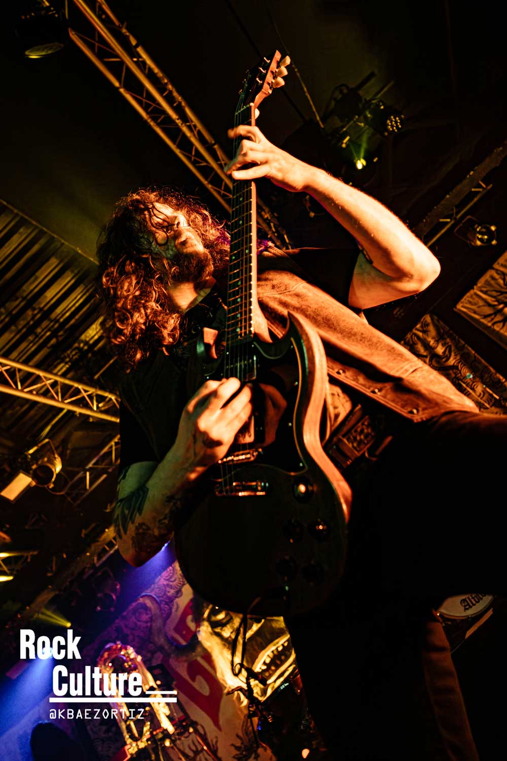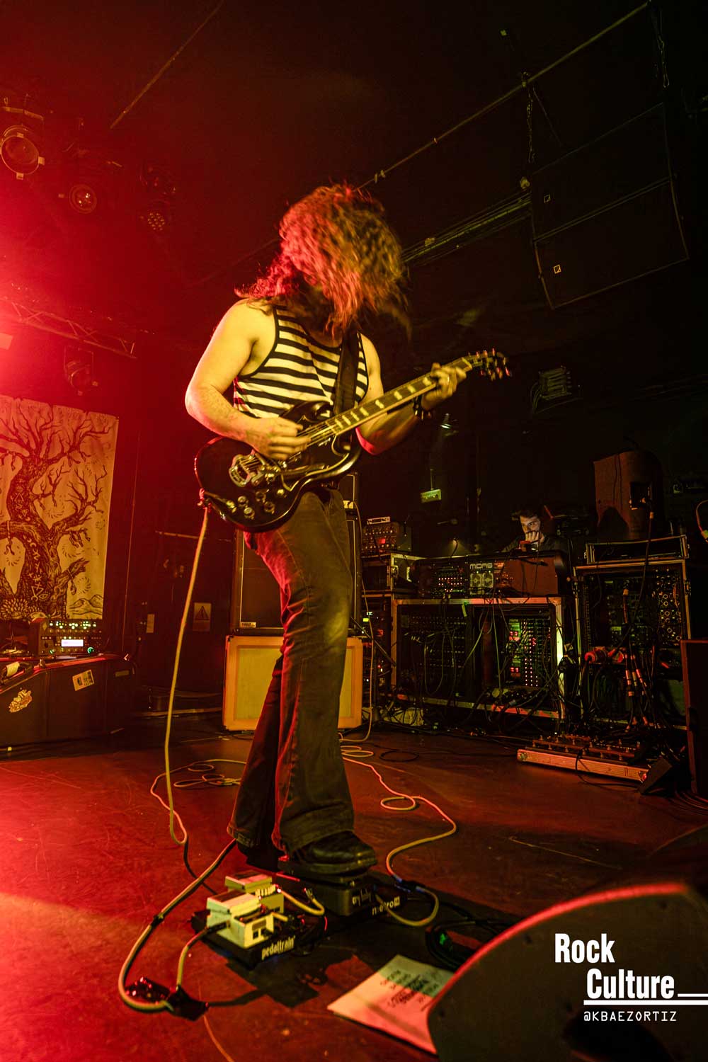 Los ingleses han sabido posicionarse en los oídos del mundo desde 2017 con tres discos de estudio que transmiten su toma de doom, stoner, y heavy, abordando lo oculto y oscuro como temáticas principales, algo como si fueran hijos de Black Sabbath y otros de la escena inglesa, pudiendo apreciar perfectamente esto en el tono de Woodland Rites, canción que inicia el show y en parte su carrera, presente en su primer disco llamado con el mismo nombre (2019), y que entra en desarrollo al seguir con Mountain Throne, canción lanzada el año 2023 en el disco This Heathen Land, y que lleva la oscuridad a momentos más encendidos y elevados, sin perder esa base sabatesca. Su vocalista, Tom Templar, sabe perfectamente como revelar la mezcla desde donde surgen, destacando su voz y su energía en el escenario, apoyado de Joseph Ghast quien además del bajo colabora con voces que agregan dinamismo a la presentación.