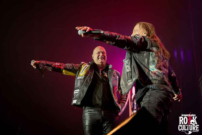 El momento más esperado de la noche llegó con Andi Deris y Michael Kiske, nuevamente compartiendo escenario y voces. Su interpretación de This Is Tokyo, el primer tema presentado de su nuevo disco, fue un espectáculo audiovisual completo fundida a blanco y negro con un coche volador en en la pantalla. El clímax llega con Andi Deris portando un lanzallamas mientras corea We Burn de su The Time Of The Oath disparando al aire con el público. Momento breve pero memorable.