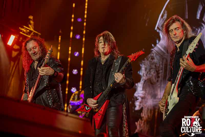 Volvieron al escenario manteniendo la emoción con clásicos como Invitation y Eagle Fly Free, donde apareció un águila imponente mecánico volando dentro de la pantalla, seguidos de Power y la festiva Dr. Stein, culminando con el final de Keeper of the Seven Keys, un broche majestuoso que cerró la noche con un equilibrio perfecto entre nostalgia, espectáculo y celebración de los 40 años de carrera de la banda. La banda no se limitó a tocar un “greatest hits” sino que combinó clásicos, rarezas y temas modernos celebrando toda su historia sin repetir fórmulas conocidas.