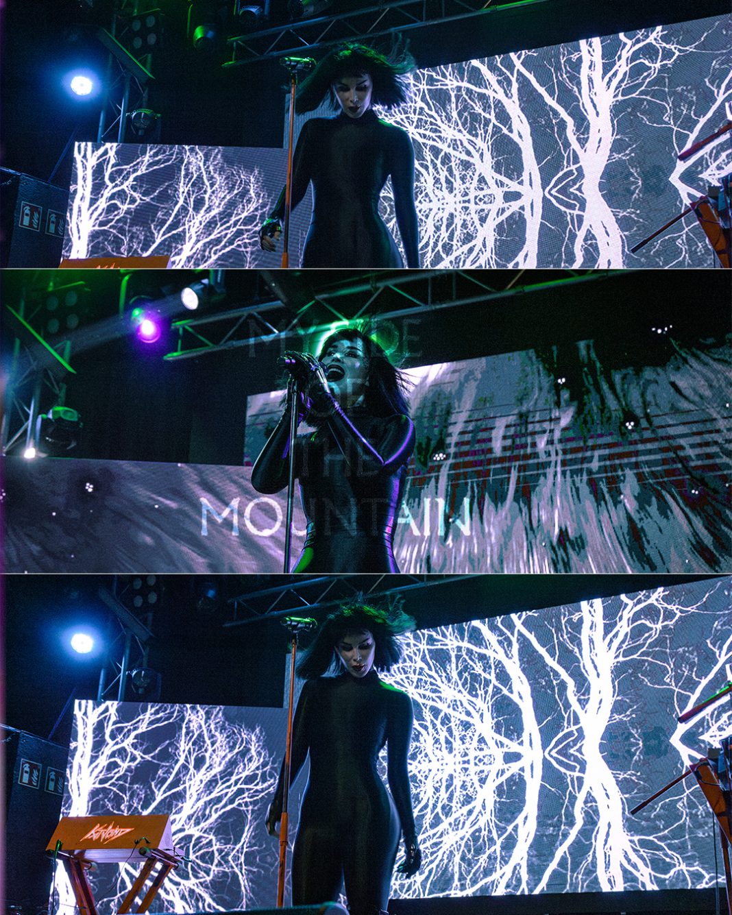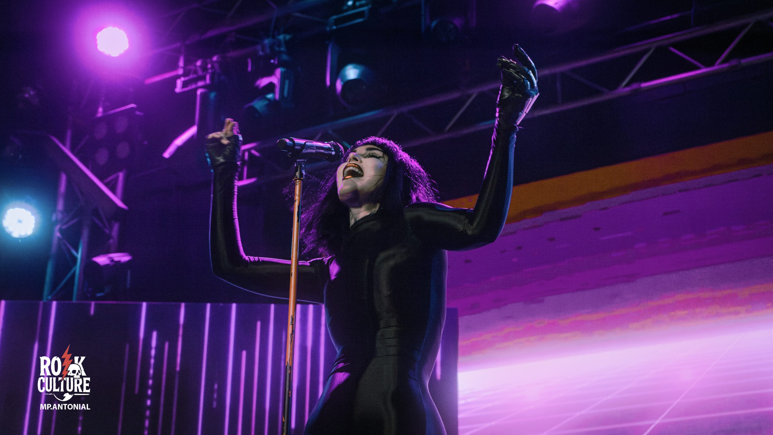 Los visuales a lo largo del set acompañaban esa atmósfera gótica que define a Kat Von D: ventanales de iglesias, bosques, cadenas… Era como adentrarse en su universo personal.