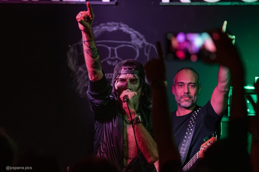 El segundo tema fue la canalla -y una de mis canciones preferidas- Mi Novia y Yo Odiamos a la Humanidad. A partir de este momento, y ya sin vuelta atrás, éxtasis de punk-rock alentado por las guitarras enérgicas de Txiki y Joel y dirigido por Pela desde el pequeño escenario de la sala. Es gracioso ver a una persona que no para encima de las tablas en un escenario pequeño, parecía sujeto a él, de hecho, se tuvo que bajar en un par de ocasiones para cantar con el público. Entre chascarrillos varios de Pela, incluída su disertación sobre el nombre del lugar, San Sebastián “De los Reyes”, fueron pasando los temas, Kímika, Mi Carrera Delictiva, Contra El Suelo, Grasa en el Taller, Mala Música… hasta llegar al momento del bis, que no fue uno al uso, sino que se hizo de corrido. Los temas elegidos fueron Aún Queda Un Sitio A Donde Huir, la versión de Gatillazo Exclavos del Siglo XXI, la rápida y rockera Habrá Pelea y para finalizar uno de los éxitos de la banda, Futuro, que suena increíble en directo. Con ello pusieron el punto final y marcharon “a descansar” ya que tenían carretera que tomar al día siguiente hacia el almeriense Albox para participar en el Rock Albox Fest.