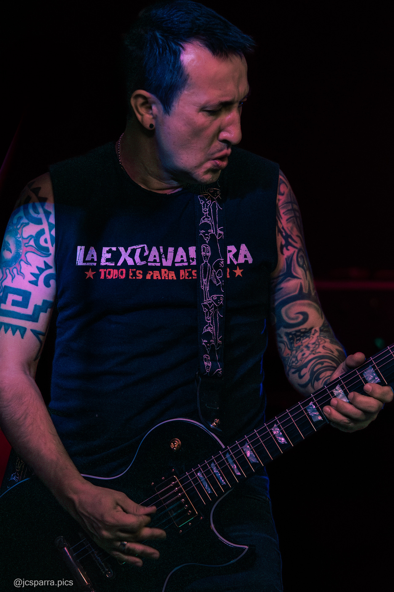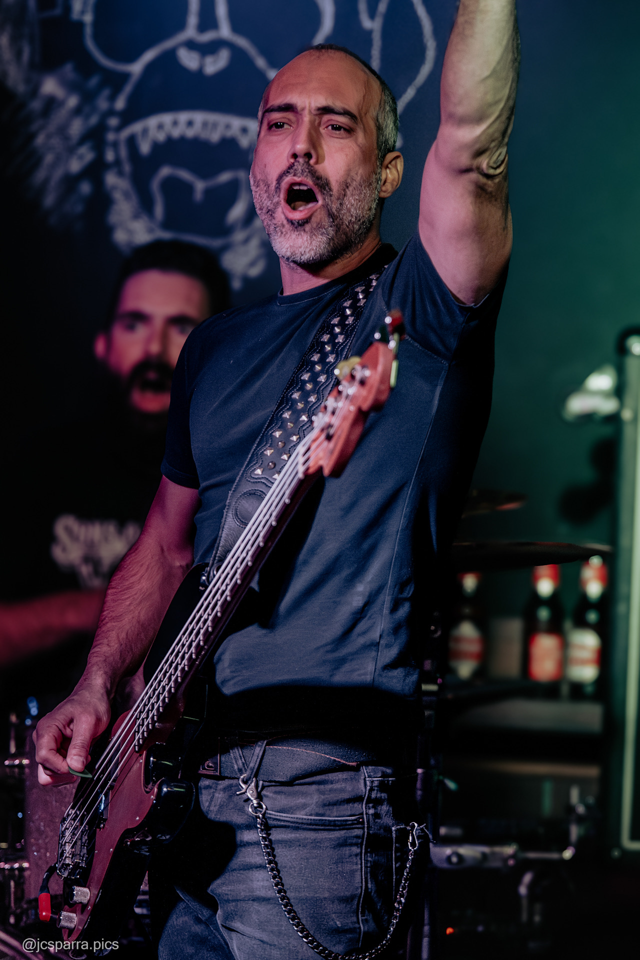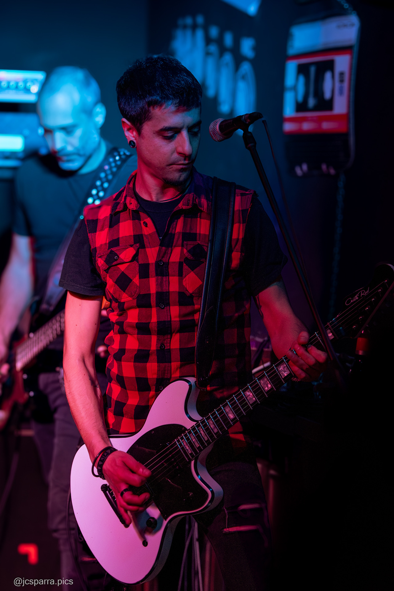 La banda vasca llegaba con un par de bajas en la formación, la conocida desde mayo de Mikel Azpiroz “Buton” al bajo y la de Alain a la batería, siendo sustituidos por Jorge Gascón y Pablo Bahillo respectivamente. El resto de la banda, y como es habitual, Joel a la guitarra y coros, Raúl Lasa “Txiki” a la guitarra y a la voz, Iñaki Urbizu “Pela”. Lo de Pela, es algo a parte, es un frontman con mayúsculas, se come el escenario y le es indiferente que sea un festival de miles de personas, o un íntimo concierto, como fue el caso de este último. Siempre me he preguntado de dónde saca el tiempo para estar con La Excavadora, Víctimas Club y con Marky Ramone si a mí no me da la vida para trabajar, sacar fotos y recoger la casa.