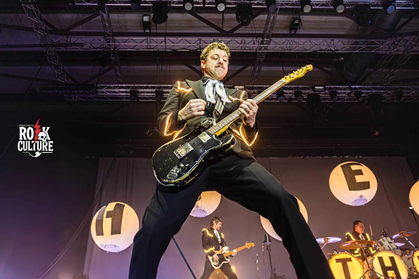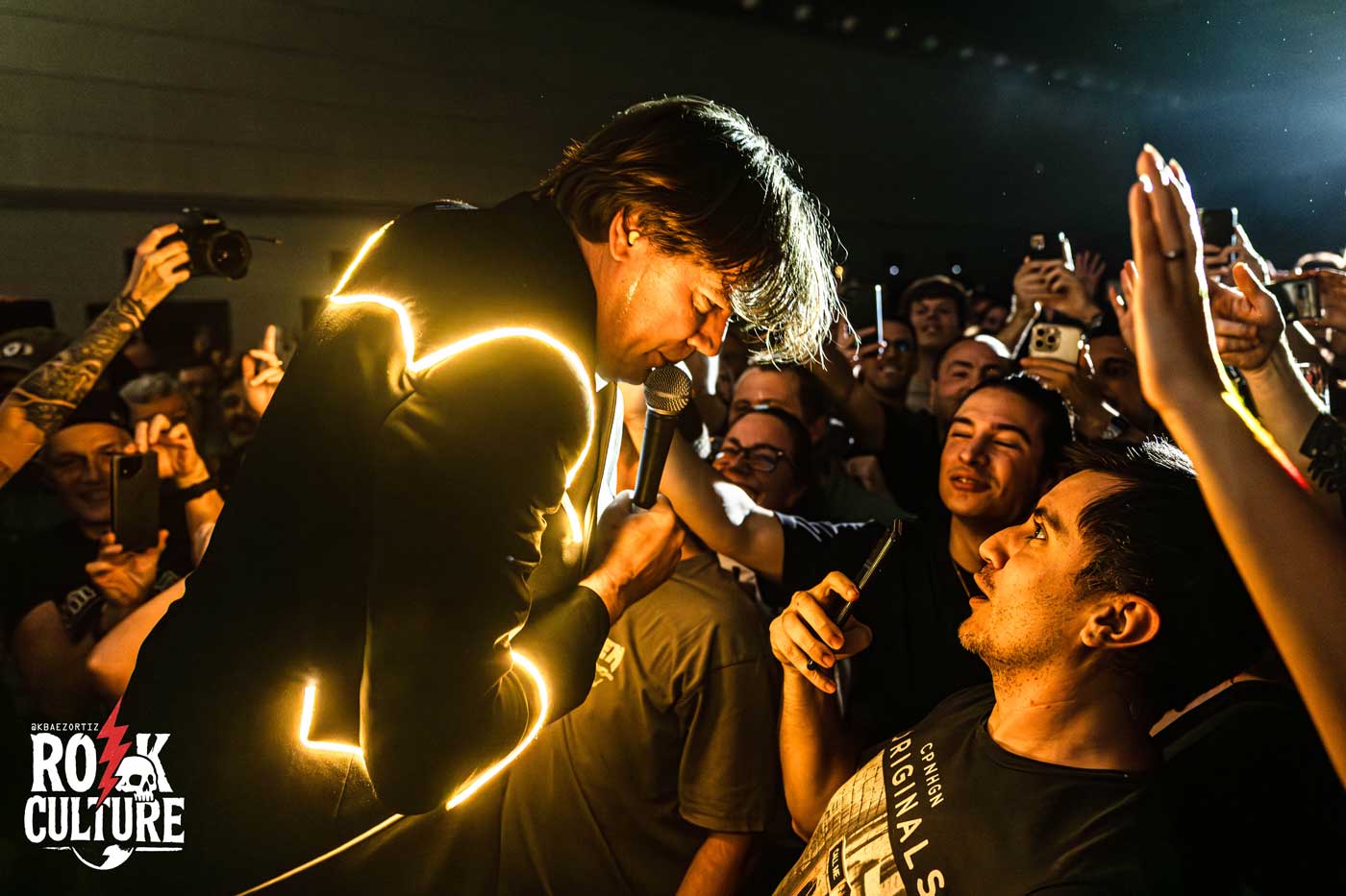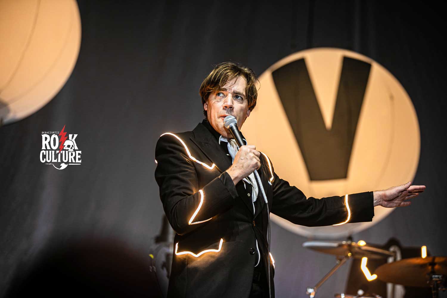 Pelle Almqviste, el cantante, asumió el centro de la escena desde el inicio, se movía con naturalidad, con ese punto de excentricidad que lo hace reconocible. Durante todo el concierto mantuvo una interacción constante con el público, hablando en gran parte en español y dejando caer comentarios graciosos, observaciones inesperadas y pequeñas improvisaciones que daban la sensación de cercanía. Esa espontaneidad ayudó a que el ambiente se sintiera más relajado y a que la banda conectara con todos.
