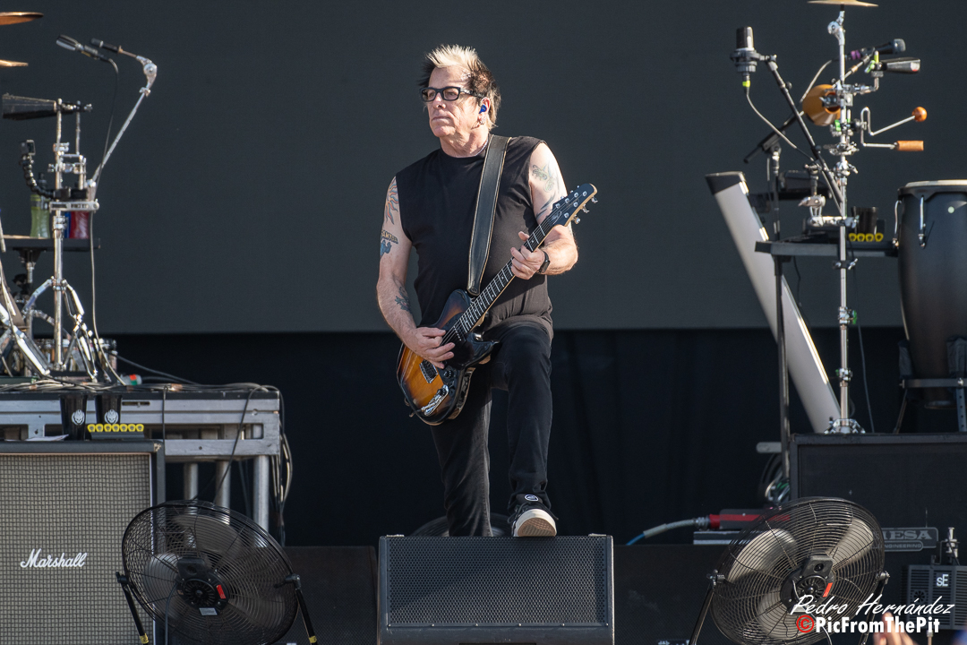 The Offspring saltan puntuales al escenario 2 Madrid is Life (vaya por delante que el nombre del escenario no me termina… Igual «from Madrid to Heaven» o «café con leche in the plaza mayor» o «is very dificult todo esto, y la segunda ya tal…» también valían). Dexter y Noodles sospechan que no juegan en casa. Demasiados «colorinchis» y purpurina entre el público se lo confirman, con gloriosas excepciones de fans ataviados con camisetas de la banda (se les distingue porque saltan, cantan y hacen amago de pogo, pero pocos les siguen). Menos mal que la banda tira de tablas y se sacan de la manga un setlist de grandes éxitos. Come Out and Play, Staring at the Sun, y All I want son los 3 temas para la prensa y los que hacen que el show arranque a máxima velocidad.
