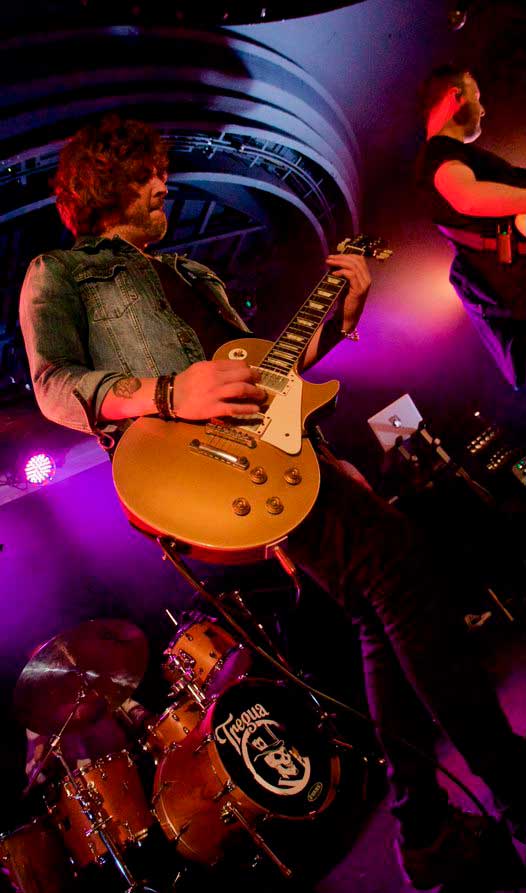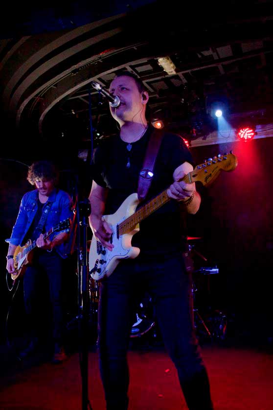 Las compensadas guitarras, lucieron en perfecto equilibrio durante todo el concierto, parece mentira que haya espacio en un escenario tan pequeño para tanta cuerda y tan bien repartida. Iván, más entregado, se pasó el concierto gozando cada riff en contrapunto con un Adri solemne en sus solos.
