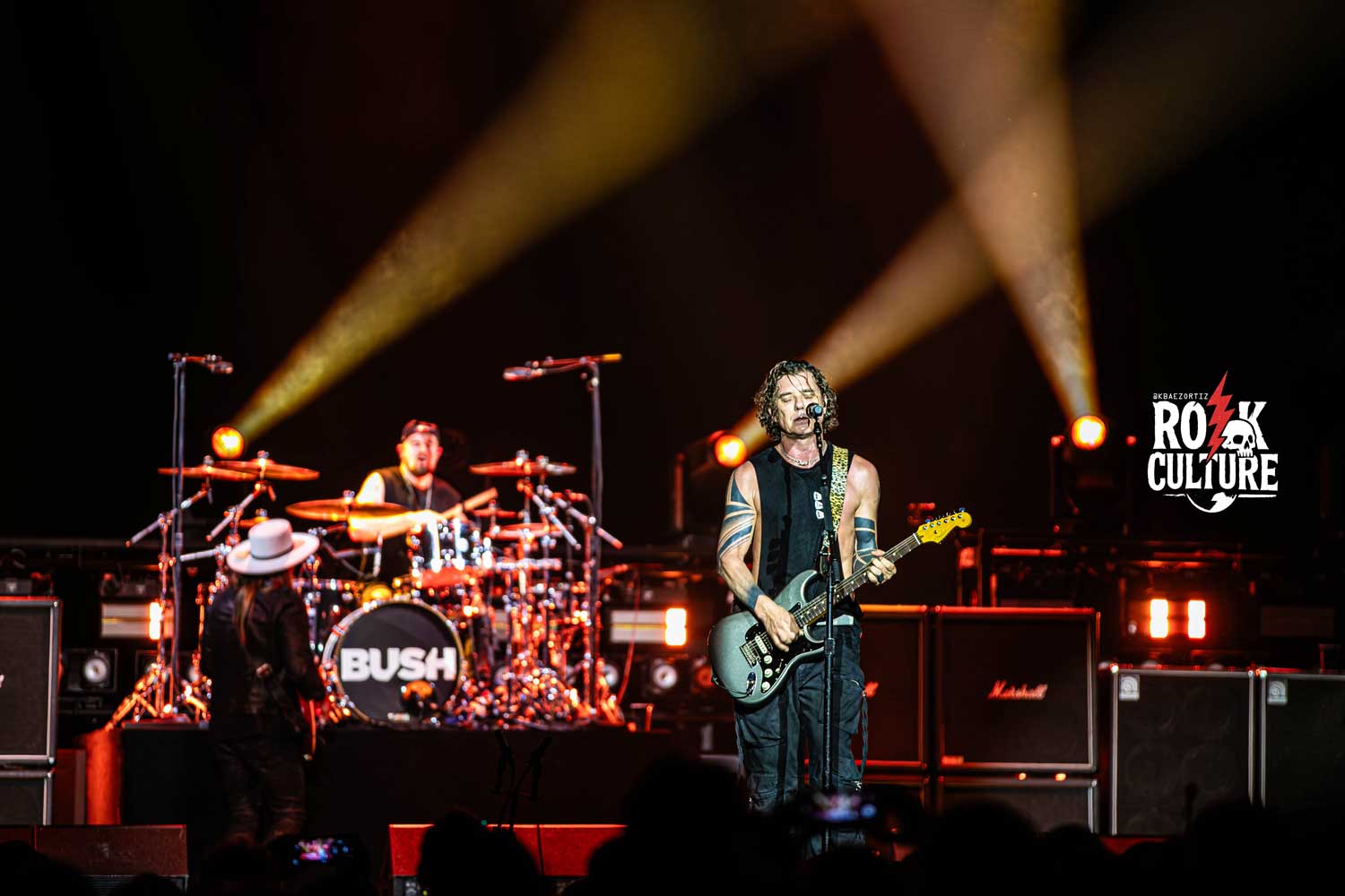 Rossdale desfiló por el escenario con cambios de atuendo y de guitarras, manteniendo siempre esa actitud de frontman cautivador. Junto a esto, suena uno de los clásicos eternos de la agrupación inglesa, Machinehead, una que vio los inicios de la banda. Y quizás a modo de dar un tributo a sus influencias, Bush tocó una versión a su estilo de Come Together, el eterno tema de The Beatles, lo que claramente revolucionó el recinto y nos movió a todos los fans de una de las bandas emblema del rock a nivel histórico.