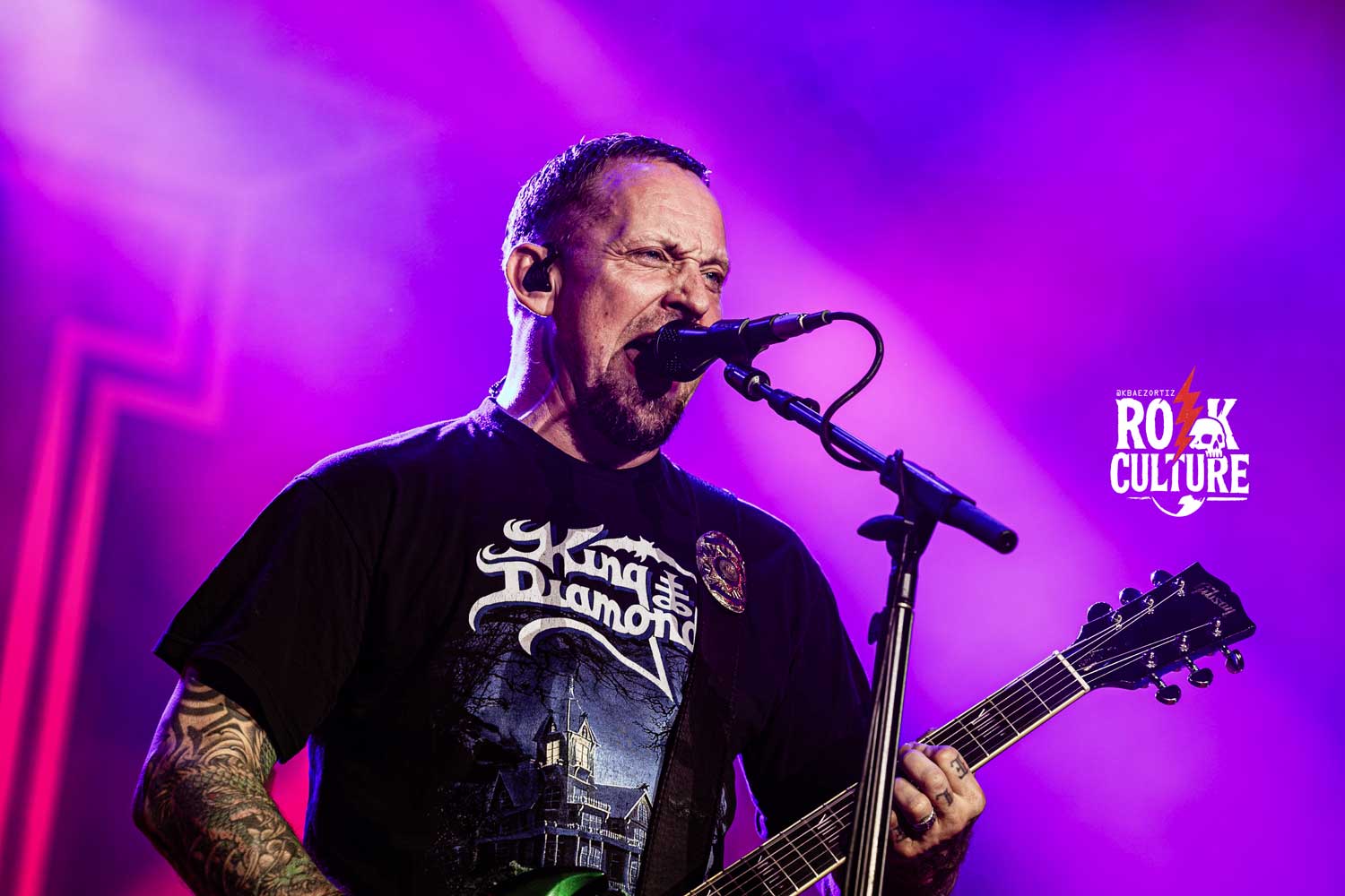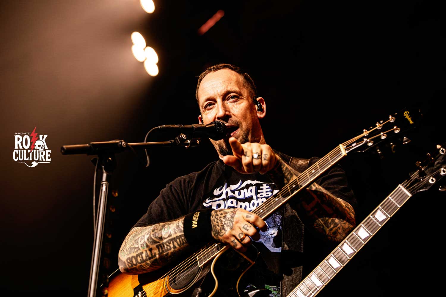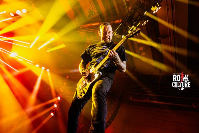 Nos encontramos frente a un escenario completamente armado para un show enorme, con telones que agrandan el misterio de un inicio del cual estábamos expectantes. Así comienza el show de los daneses, quienes no dejaron ni un poco de energía en su país natal, desatando a un público uniformado con la poderosa The Devil’s Bleeding Crown, una canción del disco de 2016 llamado Seal the Deal & Let’s Boogie, seguida por la reconocida Lola Montez, un recuerdo del año 2013 y su lanzamiento Outlaw Gentlemen & Shady Ladies, una canción imposible de no corear o bailar, donde su característica voz y guitarrista Michael Poulsen no dejó nada que desear con su potencia sobre el escenario, quien fue acompañado por Jon Larsen en la batería, y Kaspar Boye Larsen en el bajo, además de Flemming C. Lund, quien acompañó al grupo con la guitarra en su gira, y quien está presente desde la partida de Rob Caggiano en el año 2023.