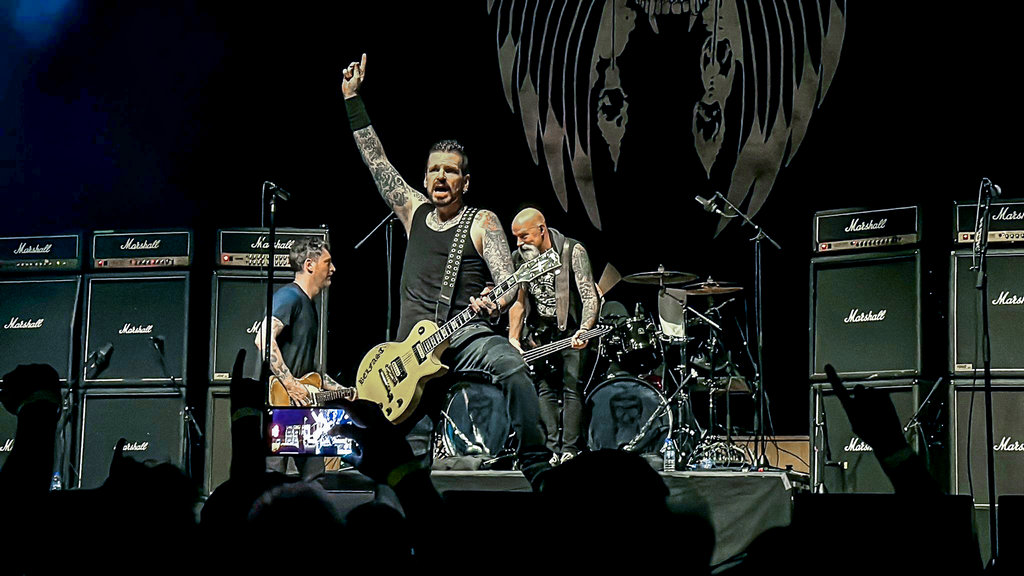 Con puntualidad británica asaltaron el escenario Wolfsbane con un sonido potente y macarra que los ha caracterizado siempre, siendo este muy bueno para ser banda invitada. Bayley ejerciendo de maestro de ceremonias, luciendo su camiseta con el mensaje de «Filthy Sex», y demostrando las tablas que tiene sobre el escenario, entonó con potencia y solvencia todos los temas del repertorio que nos llevaron durante unos 45 minutos por toda la trayectoria de la banda.