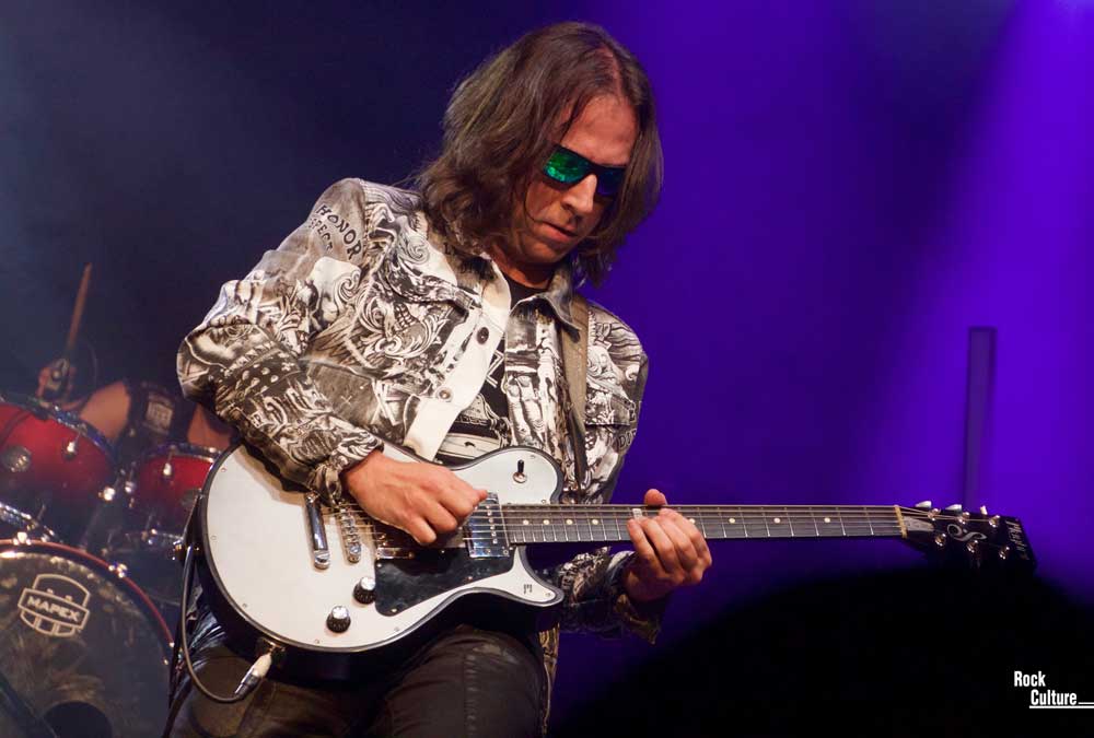 Casi sin tiempo para pestañear, aparecieron en el escenario un solitario micro, una banqueta y dos guitarras, no hacía falta más, el músico neoyorquino Danny Vaughn reclamaba su momento acústico, el cual fue una delicia para los oídos de los amantes del hard que allí nos encontrábamos. Lay Your Body Down fue el tema elegido para abrir, dejando claro su espectacular estado de voz y que para llegar a los corazones no son necesarios grandes despliegues de medios, la esencia hay que llevarla dentro. Mezclando temas de su banda Tyketto con los de su álbum en solitario Myths, Legends and Lies nos cautivó sin resistencia. Durante toda esta maldita pandemia nos ha estado regalando shows desde el salón de su casa en Estepona, acostumbrada a este formato y a su arte para contar historias entre tema y tema, me hizo sentir eso, como en casa.