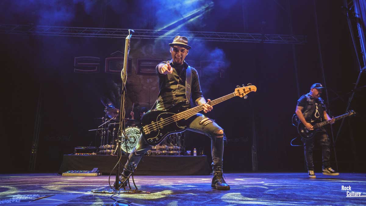 Turno para los grandes protagonistas de la noche: Sôber. Un gran telón de fondo con el logo del grupo un escenario en que apenas había más elementos que la batería y un pie de micro en el centro del escenario.
