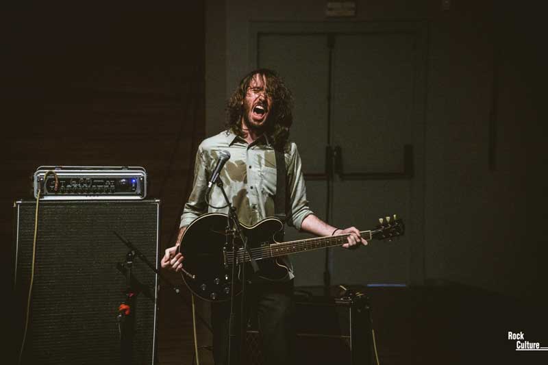 Jaime llevaba una stratocaster negra que me habría llamado la atención de no ser porque Cándido, guitarra y voz de la formación, se presentó con una Gibson 339, algo totalmente inusual teniéndonos acostumbrados a su telecaster (ahora ya americana) negra. Repetía color, eso sí. Conectaron cables a las pedaleras y comenzaron los primeros acordes de Una soga, canción con la que inicia el último disco de la banda cordobesa, Bellavista. Comenzaba a escucharse la voz de Cándido “me subo al escenario, saludo a la afición…”