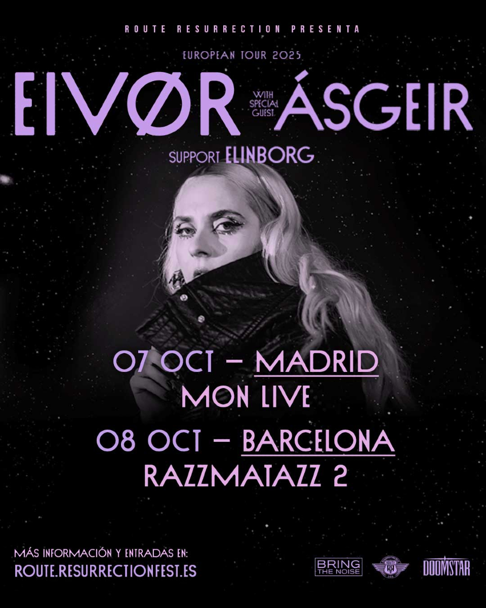 Tras su memorable actuación en el Resurrection Fest 2024, Eivør regresa a España acompañada por el cantautor islandés Ásgeir, conocido por su folk electrónico que evoca paisajes fríos y solitarios. También se unirá a la gira Elinborg, hermana de Eivør, cuya propuesta de art pop y folk contemporáneo comparte la sensibilidad etérea de su tierra natal.