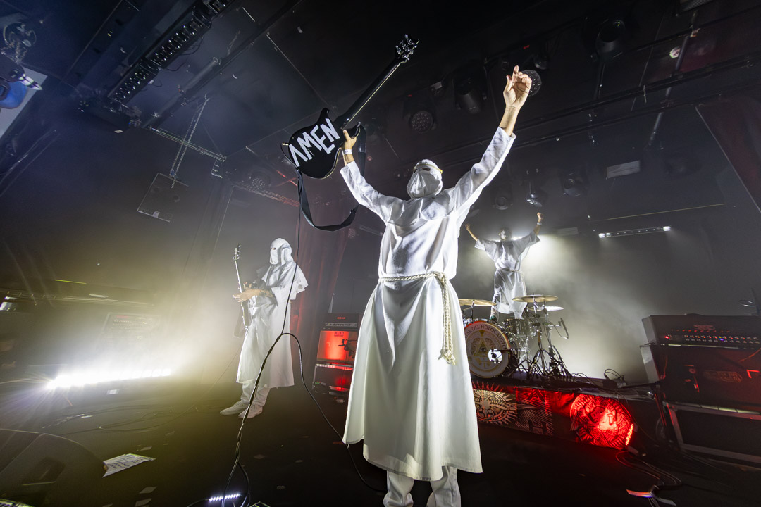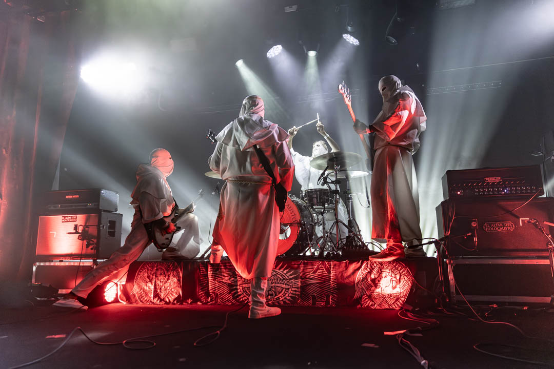 En los grandes conciertos, la energía del escenario y la del público se asimila, se conecta y esto es lo que pasó con la actuación de El Altar del Holocausto, nota a nota, tema a tema, la unión se hizo más fuerte hasta que el cuarteto alcanzó el éxtasis y santificó la sala madrileña con su intensa y profundamente doom Love Your Enemies, Do Good to Those Who Hate You, Bless Those Who Curse You.