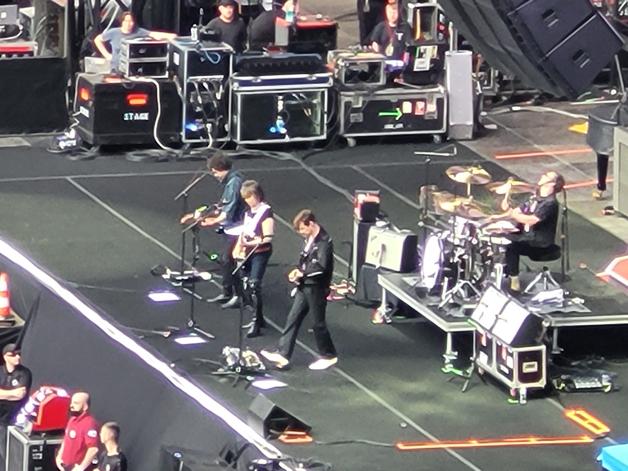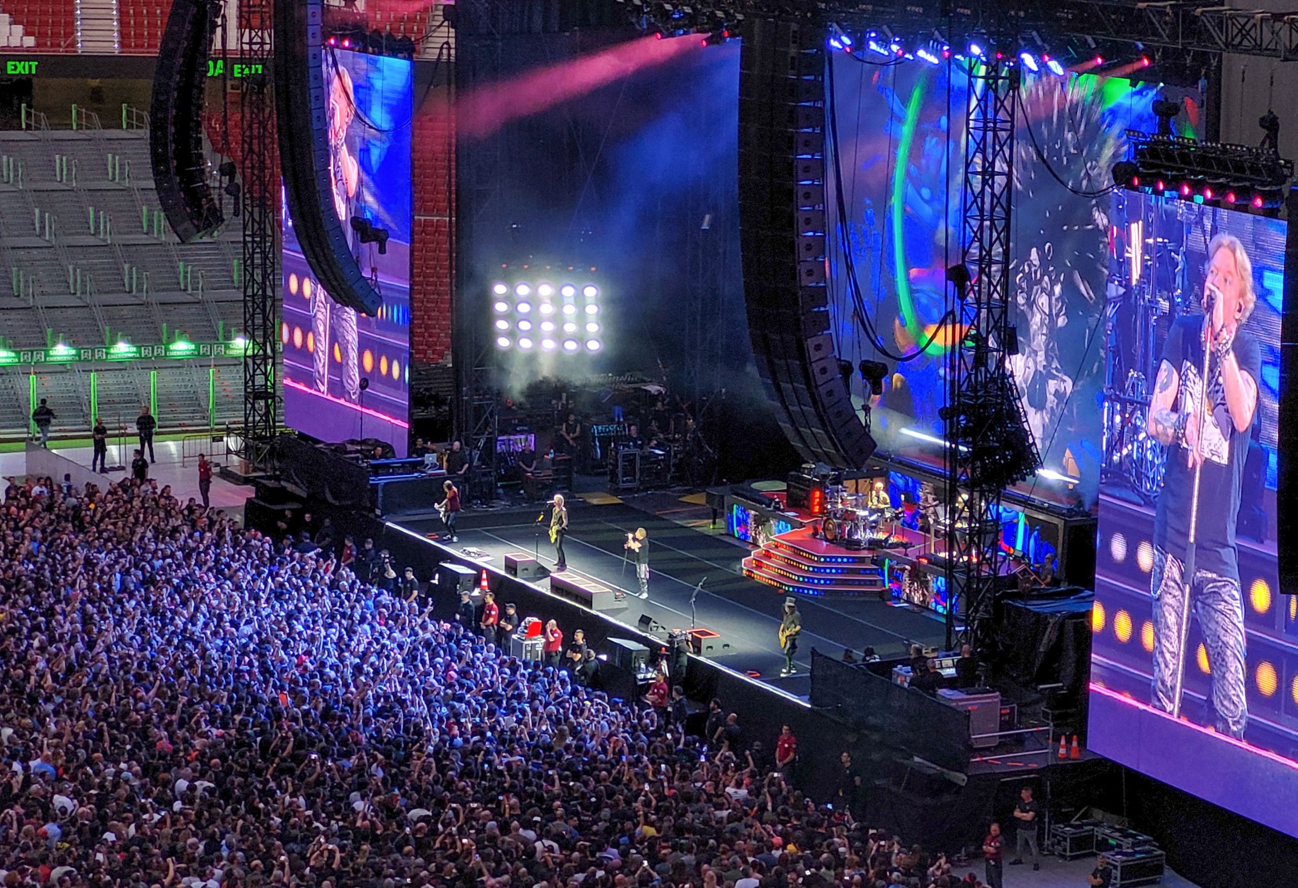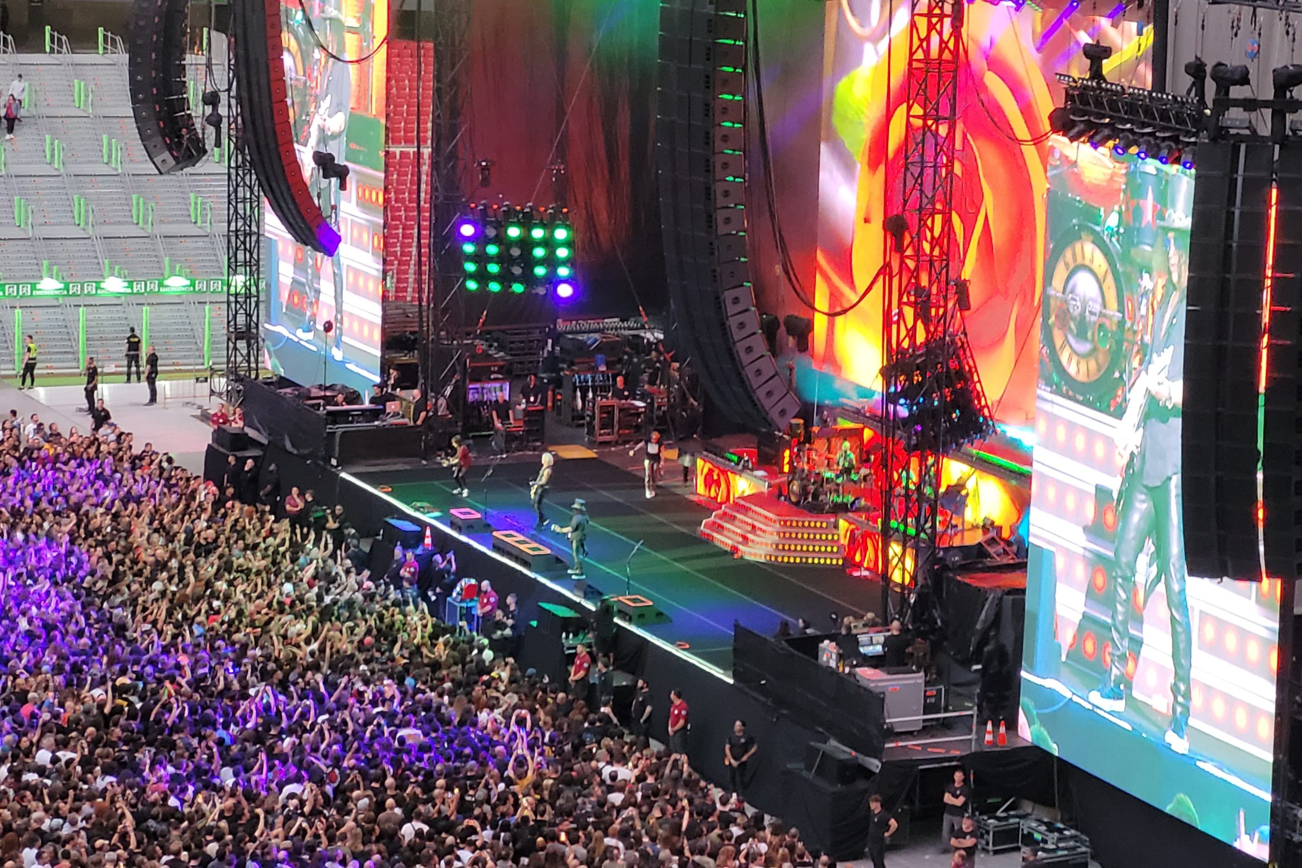 Van 12 temas, empieza a notarse algo de cansancio y quedan 21 más. Que por nadie pase. El volumen sigue altísimo (nivel doloroso por momentos) y quizá se echa en falta algo más de espectáculo. El show, en general, parece anclado en los años 90 (para lo bueno y para lo malo). Tres pantallas, un petardazo en una canción y ya. Es cierto que lo importante es la música, pero entre montar un show como Rammstein o Pink Floyd y esto hay muchos grises y se puede hacer un buen espectáculo sin que el show se coma a la música, por ejemplo, los Stones.
