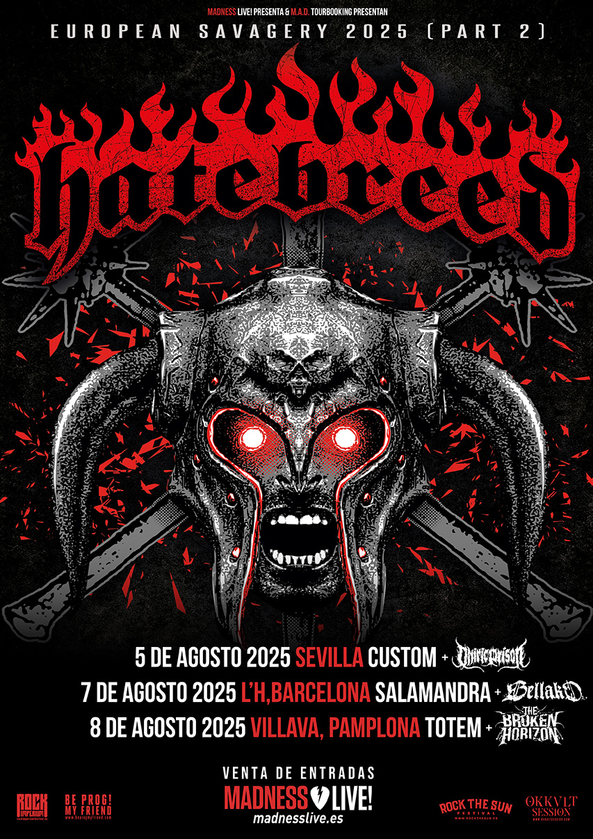 Hatebreed está a punto de aterrizar en Barcelona. Este 7 de agosto, en la sala Salamandra, los de Connecticut regresan con su hardcore/metalcore, dispuestos a ponerlo todo patas arriba. La cita forma parte de su European Savagery Tour 2025, que incluye solo tres fechas en España: Sevilla, Barcelona y Pamplona