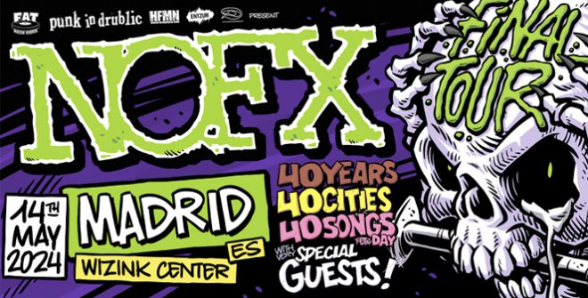 Aunque parezca mentira, ésta será la última vez que veremos a Fat Mike, El Hefe, Erik Sandin y Eric Melvin sobre un escenario y el público español ha entendido la importancia del evento, llenando el recinto madrileño (sólo queda el 10% de las entradas según informan desde la promotora HFMN CREW) para vivir lo que será, sin duda, una noche inolvidable.