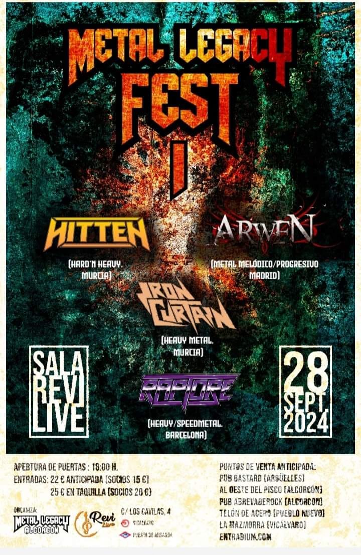 La madrileña Sala Revi Live acoge el próximo 28 de septiembre el I Metal Legacy Fest, festival organizado por Metal Legacy Alcorcón. La asociación, fundada en el sur de Madrid a finales de 2023, celebra su primer gran evento con un cartel formado por algunas de las bandas más consolidadas del heavy metal underground español y grandes promesas de la escena.
