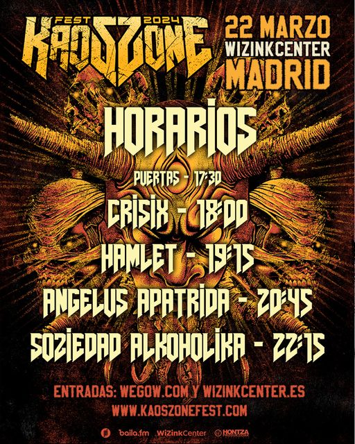 El festival Kaos Zone Fest une a en un mismo escenario a los 4 titanes del Thrash Metal y Hardcore actual. Soziedad Alkoholika, Angelus Apatrida, Crisix y Hamlet estarán en el Wizink Center de Madrid en una de las fechas más potentes del año.