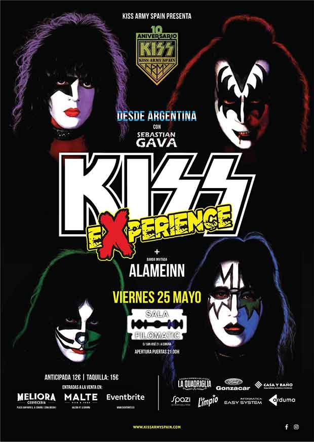 Tendrá lugar en la Sala Filomatic (c/ San José, 21) y actuará la banda tributo Kiss Experience con Sebastián Gava a la cabeza y junto a ellos tocarán los hardrockeros coruñeses Alameinn.