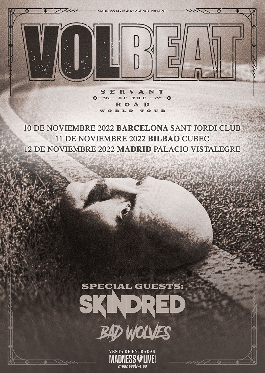 Tras un intenso año presentando en sociedad su potente trabajo, Servant of the Mind, Volbeat aterriza por fin en tierras españolas para ofrecer tres conciertos en Barcelona, Bilbao y Madrid. Los de Michael Poulsen llegan con una gira bien rodada por Estados Unidos y por los principales festivales de verano europeos y con un setlist en el que hacen sonar, prioritariamente, los contundentes cortes de su último trabajo publicado a finales de 2021, pero no se olvidan de imprescindibles como Die to Live, Still Counting, Lola Montez o Fallen.