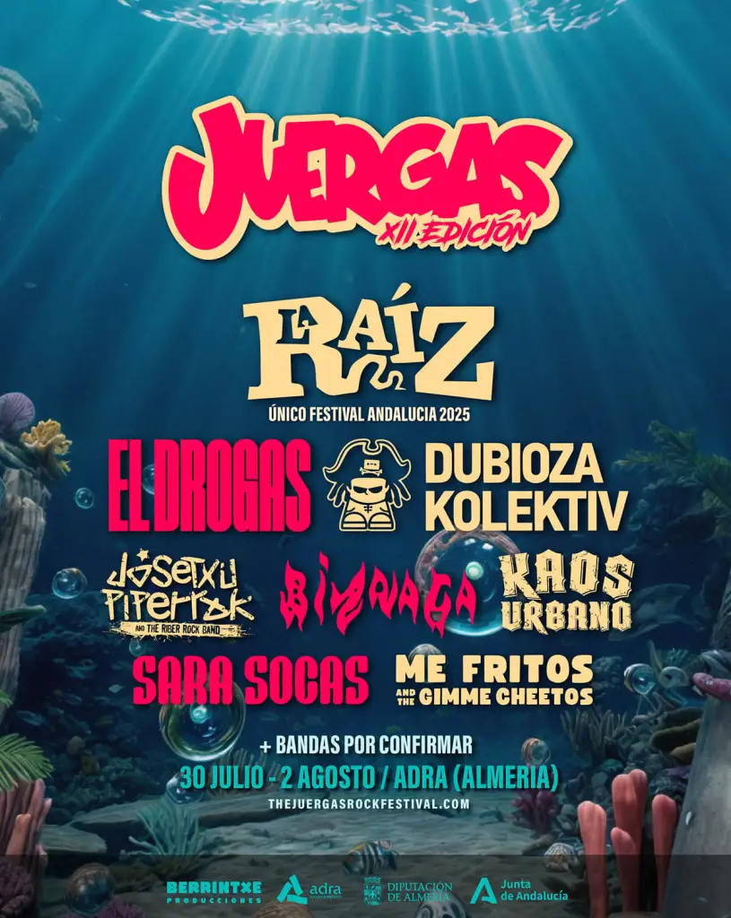 Tras publicar las fechas de celebración, del 30 de julio al 2 de agosto de 2025; el festival almeriense The Juergas Fest con sede en Adra, ha anunciado un avance de cartel junto a la venta de los primeros abonos.