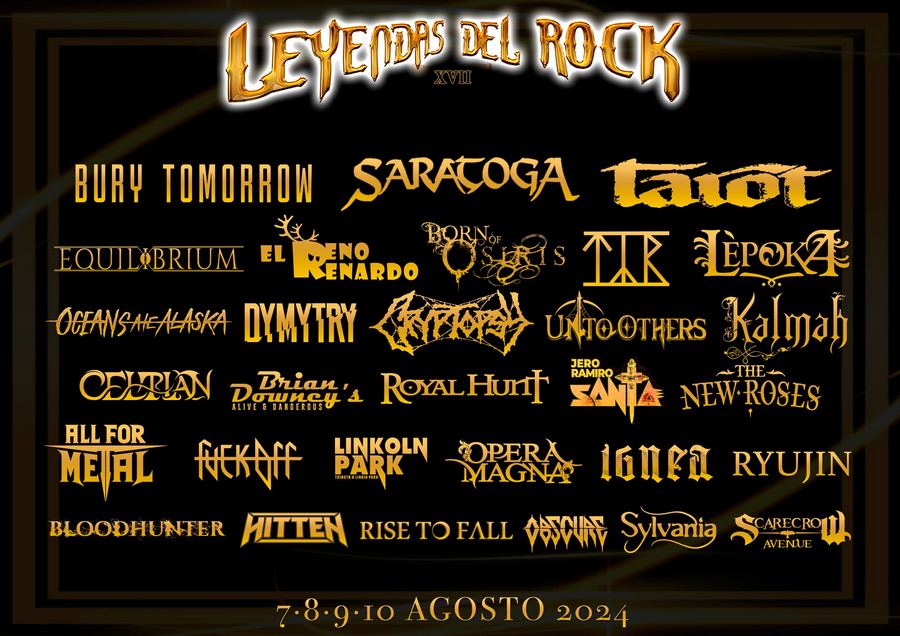 Con las 30 incorporaciones anunciadas este jueves, queda cerrado el cartel del Leyendas del Rock 2024 con un total de 57 bandas, más la banda nacional que salga ganadora de la edición anual del Forjando Leyendas. El festival tendrá lugar en el habitual recinto del Polideportivo Municipal de Villena (Alicante) los días 7, 8, 9 y 10 de agosto de 2024.