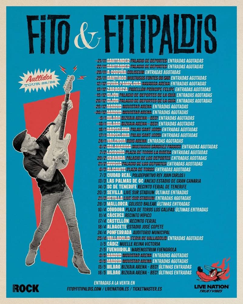 El Movistar Arena se vestirá de gala los días 29 y 30 de diciembre para acoger de nuevo a Fito y Fitipaldis presentando su nuevo disco Aullidos. Con las entradas agotadas desde que salieron a la venta, tuvieron que ampliar su paso por Madrid a dos días más en 2026, 8 y 9 de mayo.