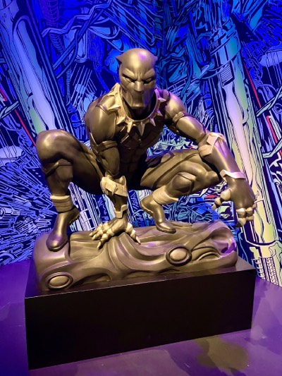 Nada más entrar podemos sentarnos a conversar en un sofá con Thing, la cosa. La pantera negra T’Challa es una de las figuras más logradas y que más fotos acapara.