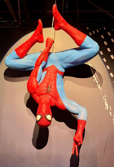 Un de los iconos de Marvel acapara una amplia zona Spiderman. El vecino y amigo parece volar sobre nosotros a lo largo de la sala.