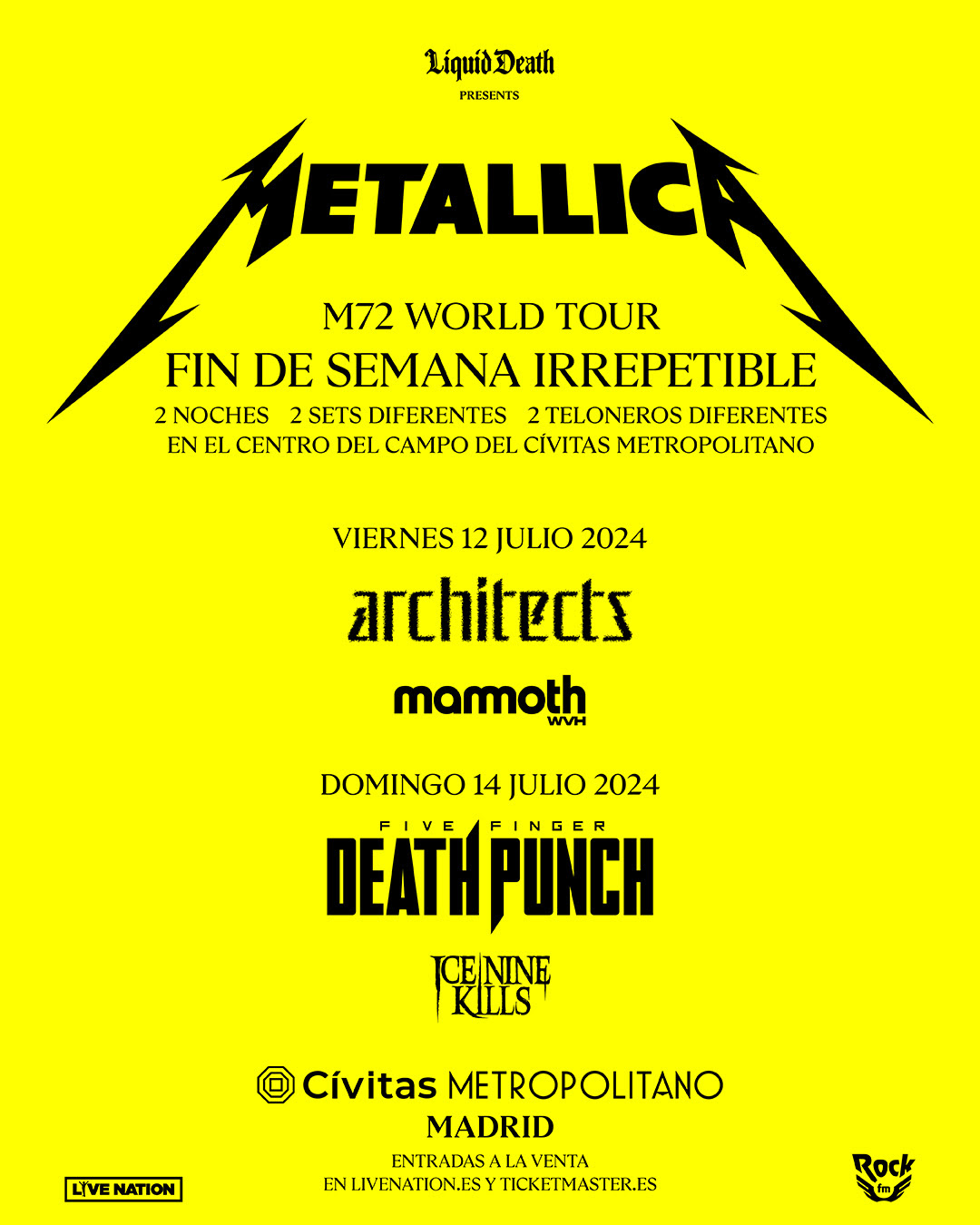 Como veis, va a ser un fin de semana único e irrepetible el que nos ofrecerá Metallica de la mano de Liven Nation España.