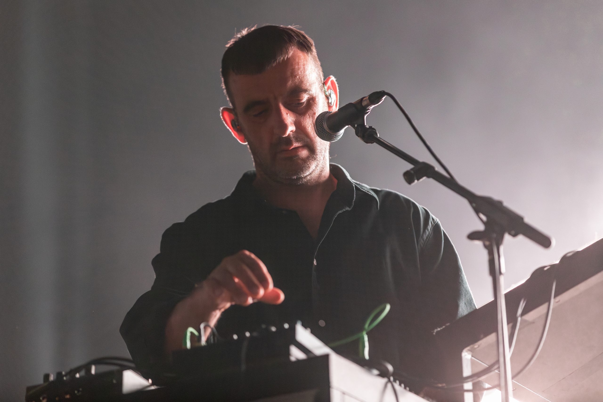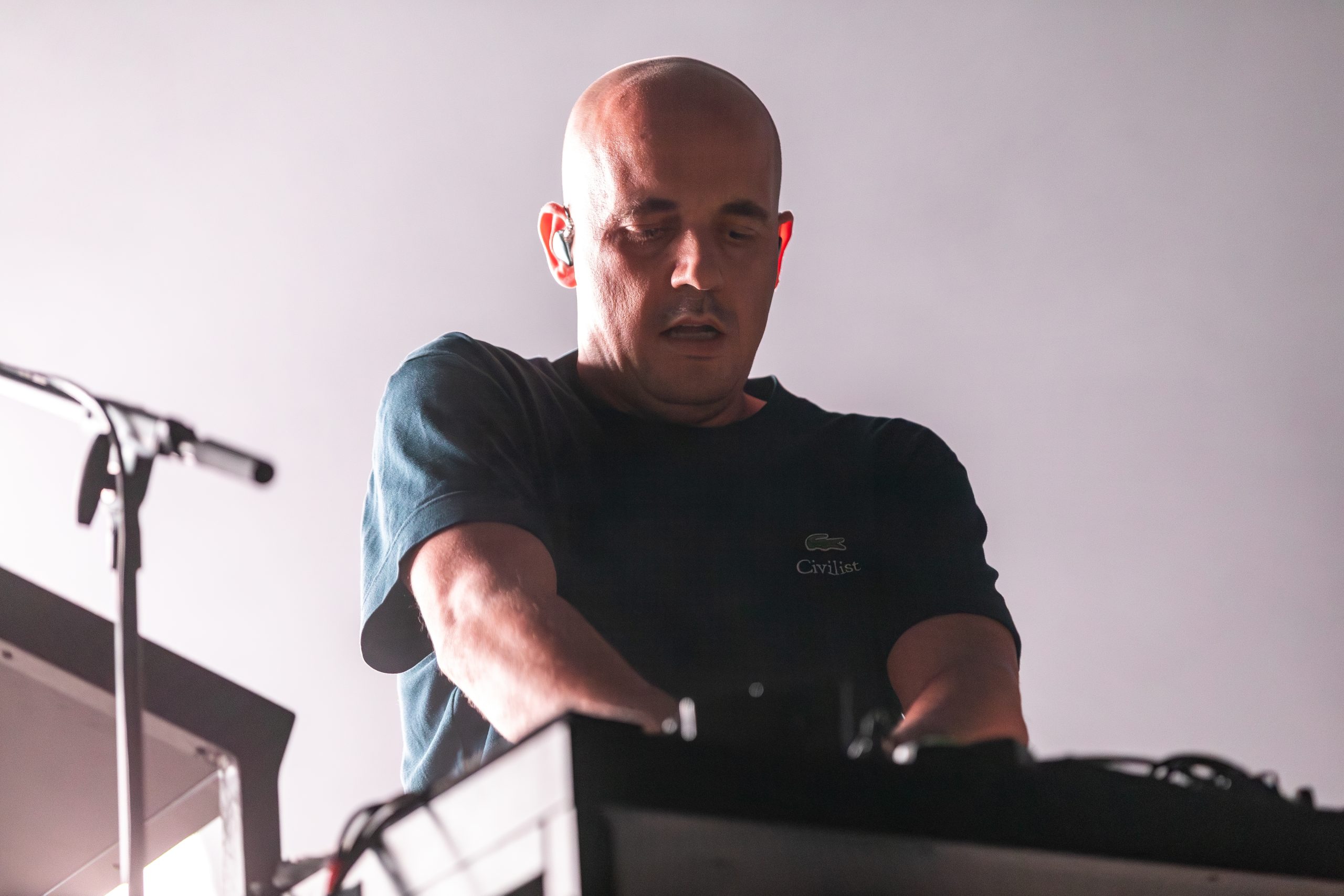 Así, el pasado viernes 7 de julio, dimos comienzo a la velada con Nacho Marco, reconocido DJ y productor de Valencia y con más de dos décadas de experiencia en la escena electrónica. El set, de aproximadamente una hora, sirvió como un entrante perfecto para calentar motores antes de que Moderat, que, de hecho, habían agotado entradas en pista, subieran al escenario.