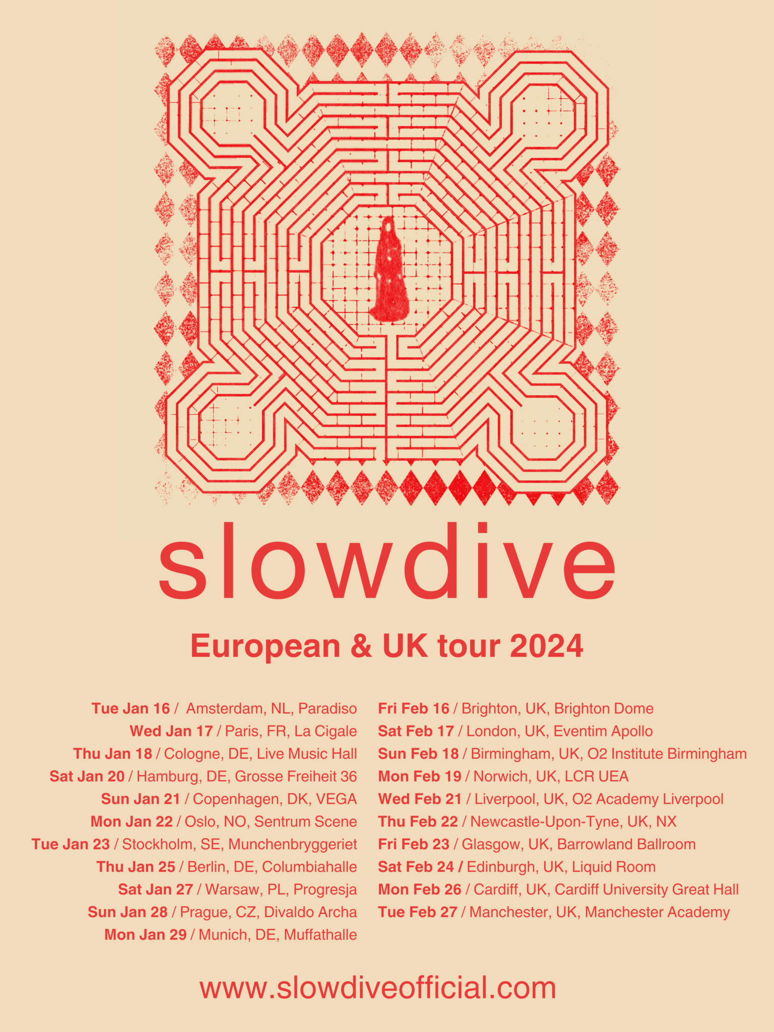 El 5 de febrero en la sala Razzmatazz en Barcelona y el 6 de febrero en La Riviera en Madrid, Slowdive presentará su trabajo más reciente aunque también tocarán temas más conocidos y esperados por sus fans más acérrimos.