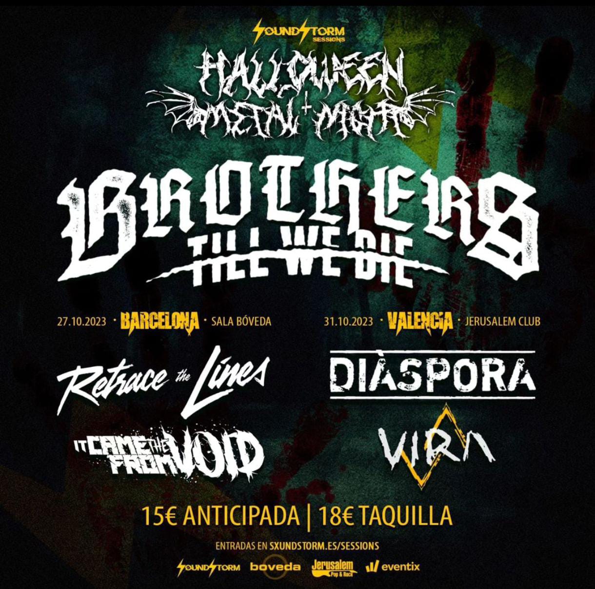 El cartel del 27 de octubre en Barcelona lo completarán los valencianos Retrace the lines que pronto volverán con nuevo trabajo y la banda local It came for the void que junto con Brothers till we die amenizarán la noche de Halloween en la Sala Bóveda.