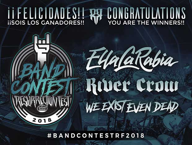 Desde el Resurrection Fest nos lanzan dos comunicados. El primero corresponde a las tres bandas ganadoras del Band Contest de este año, que son Ella La Rabia, River Crow y We Exist Even Dead. Actuarán cada uno en un día distinto. ¡Enhorabuena!