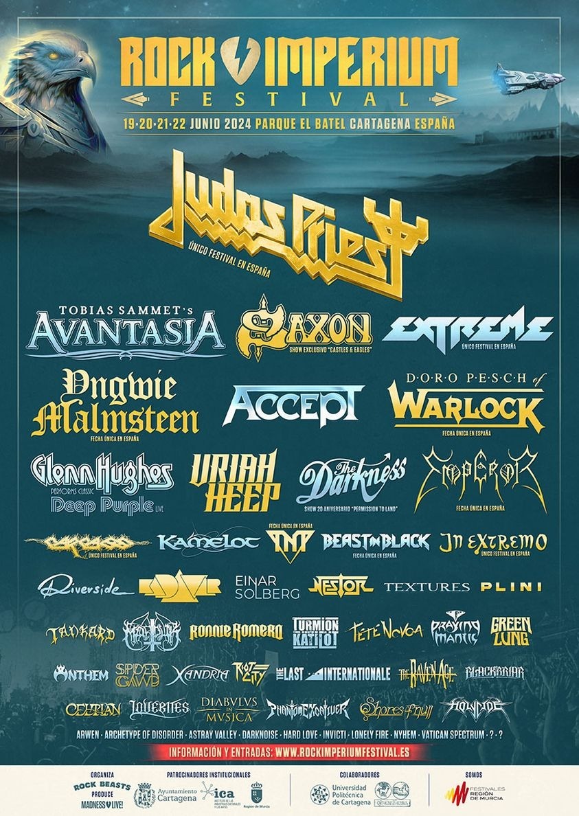 Tras la última tanda de confirmaciones anunciadas el pasado 6 de octubre, donde entró Avantasia como cabeza de cartel, junto a otros atractivos nombres como Carcass, Kamelot, In Extremo o Marduk, el festival Rock Imperium con sede en Cartagena ha revelado que Judas Priest y Glenn Hughes, el histórico ex vocalista y bajista de Deep Purple, visitarán el festival en su próxima edición de 2024. La formación británica capitaneada por Rob Halford vendrá dispuesta a arrasarlo todo con la presentación de su último disco Invincible Shield, así como a hacer un gran repaso de toda su trayectoria.