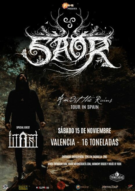 La banda de folk black metal atmosférico Saor, conocidos por usar las influencias de la música celta en sus composiciones, nos visita desde Escocia trayendo consigo un poco de las montañas del norte para compartirnos esos paisajes y atmósferas que inspiran su sonido, presentando su nuevo disco Amidst The Ruins en el marco de su Amidst The Ruins Tour in Spain 2025, organizado por Kivents, y que pasará por Madrid, Valencia, y Barcelona. En Madrid y Valencia, la apertura estará a cargo de los valencianos de Litost, los que desplegarán su metal extremo por el escenario para hacer camino a Saor, mientras que en Barcelona lo hará la banda catalana Udûn, quienes aportarán una buena cuota de black metal crudo y local para prepararnos para el viaje por las sierras escocesas.