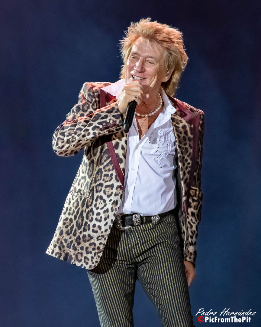 Rod Stewart salía a escena escoltado por su coristas para comenzar con Addicted to Love . Todas iban con trajes ejecutivos y guitarras blancas, en lo que era un claro homenaje a la estética de los videoclips de Robert Palmer. Sería la primera de las muchas versiones con las que nos deleitarían esa noche, entre todos los hits habituales del artista. You Wear it Well, un clásico del 72 de su albúm Never a Dull Moment era el tema que ponía punto y final a las fotografías. Justo después vinieron las luces buenas y el espectáculo.