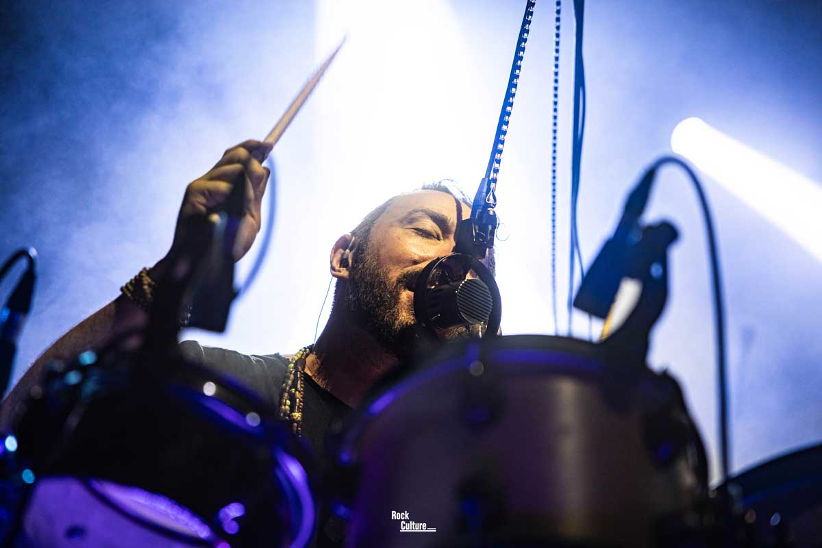 Los encargados de abrir puntualmente a las 19:30 fueron TERRA con su interesante propuesta de metal tribal. Un gran despliegue de instrumentos comandados por la imponente batería y micrófono en medio, pero el eje de su música giraría en torno a las percusiones y flautas que entre tema y tema cambiaban sus bisectrices y ejecutantes. Los italianos lograron crear una atmósfera totalmente hipnótica envolviéndonos a todos en su ritual alternativo siendo una gran apertura para esta velada progresiva.