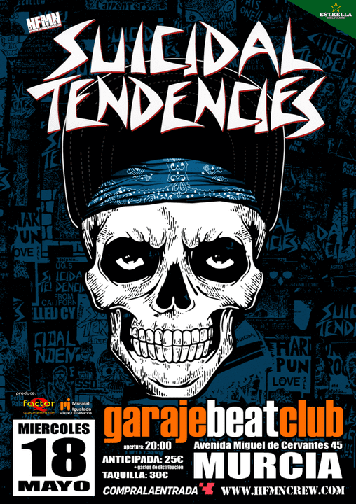 Los legendarios californianos Suicidal Tendencies formados en Los Angeles (USA) hace ya más de 40 años anuncian dos fechas únicas en solitario (el resto de la gira acompañan a Bad Religion). Una de ellas los trae el próximo 18 Mayo a la Sala Garaje Beat Club de Murcia en una noche que promete ser histórica.