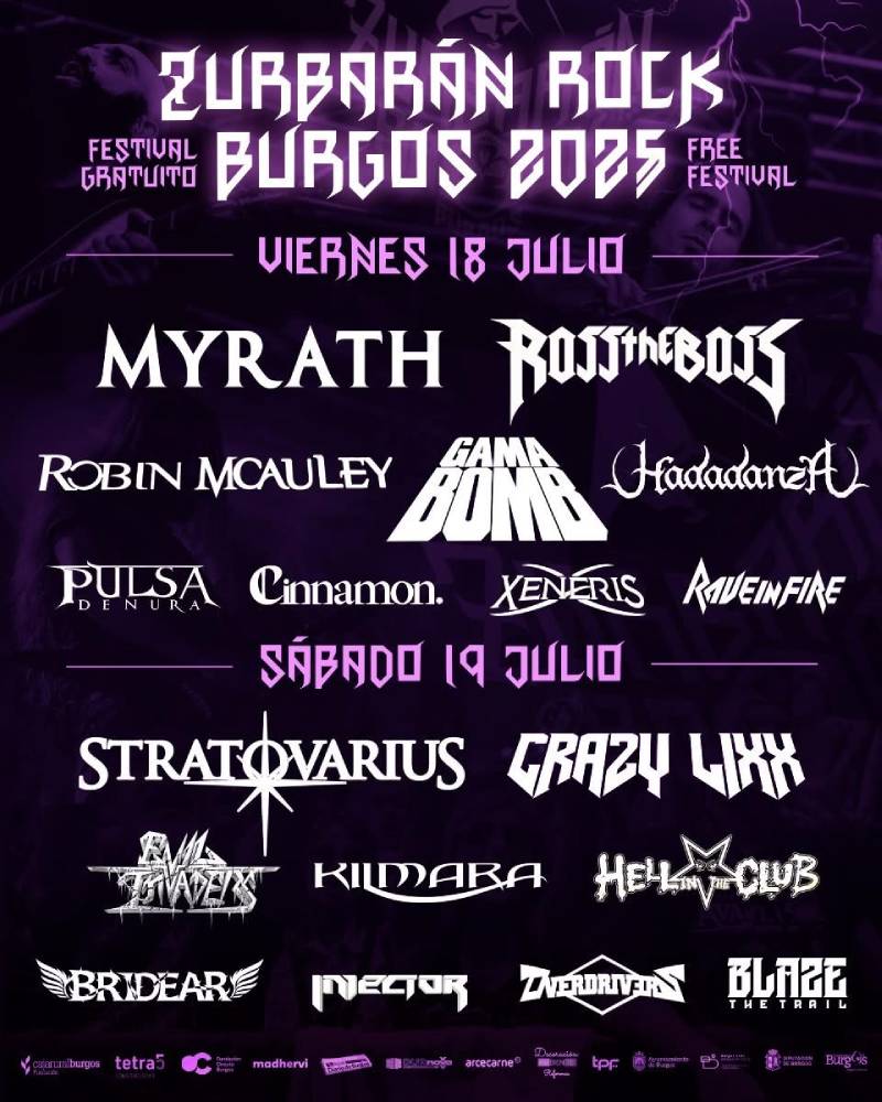 Los días 18 y 19 de julio en el Parque de San Agustín de Burgos se celebrará el Zurbarán Rock 2025, recordamos que la entrada será gratuita y el cartel, para todos los gustos.